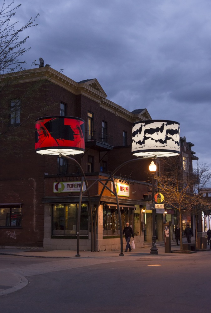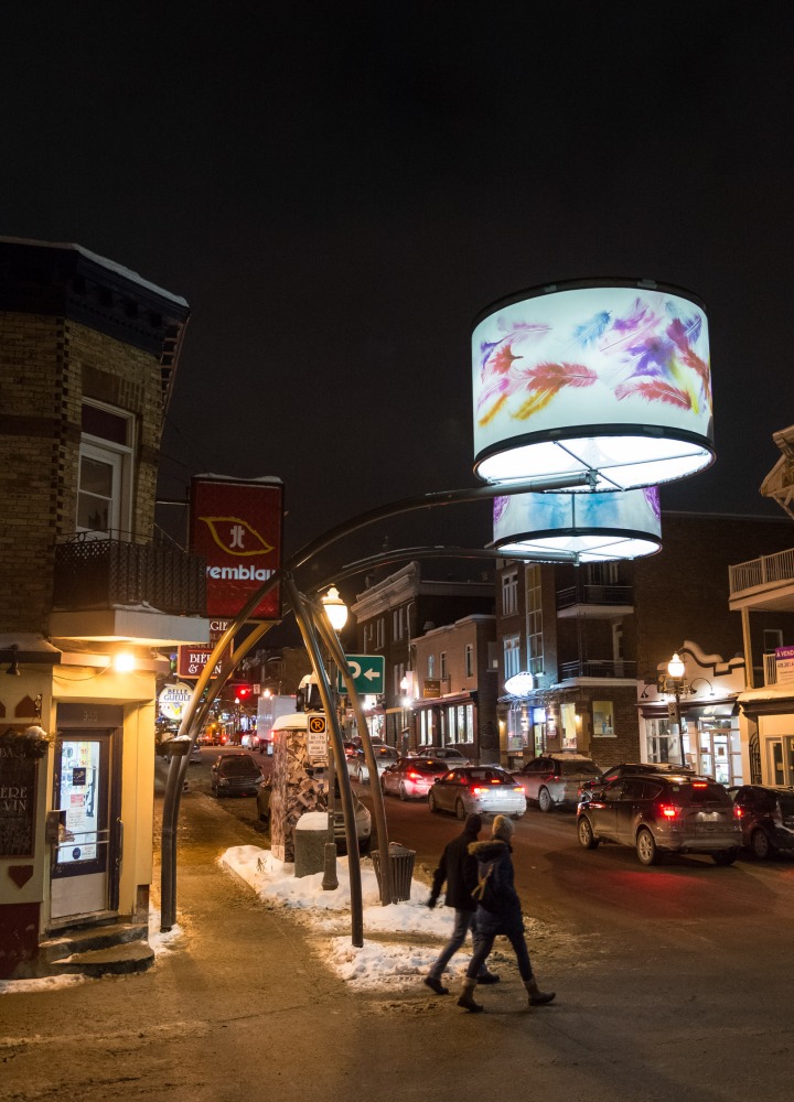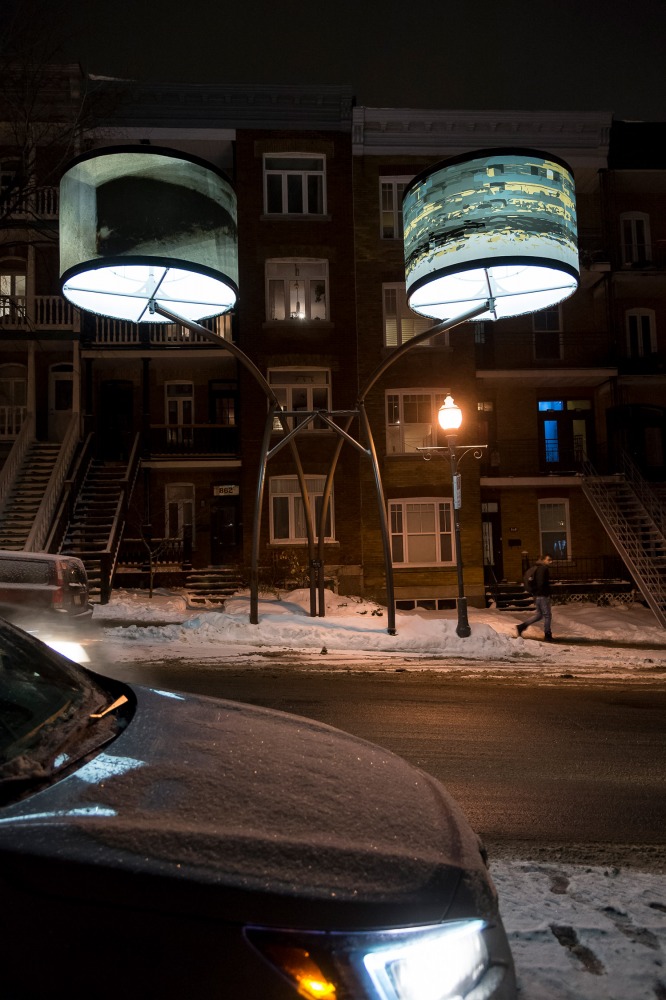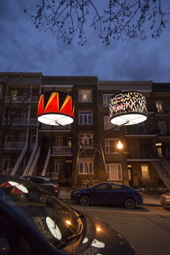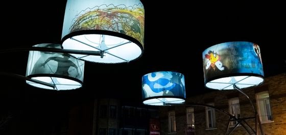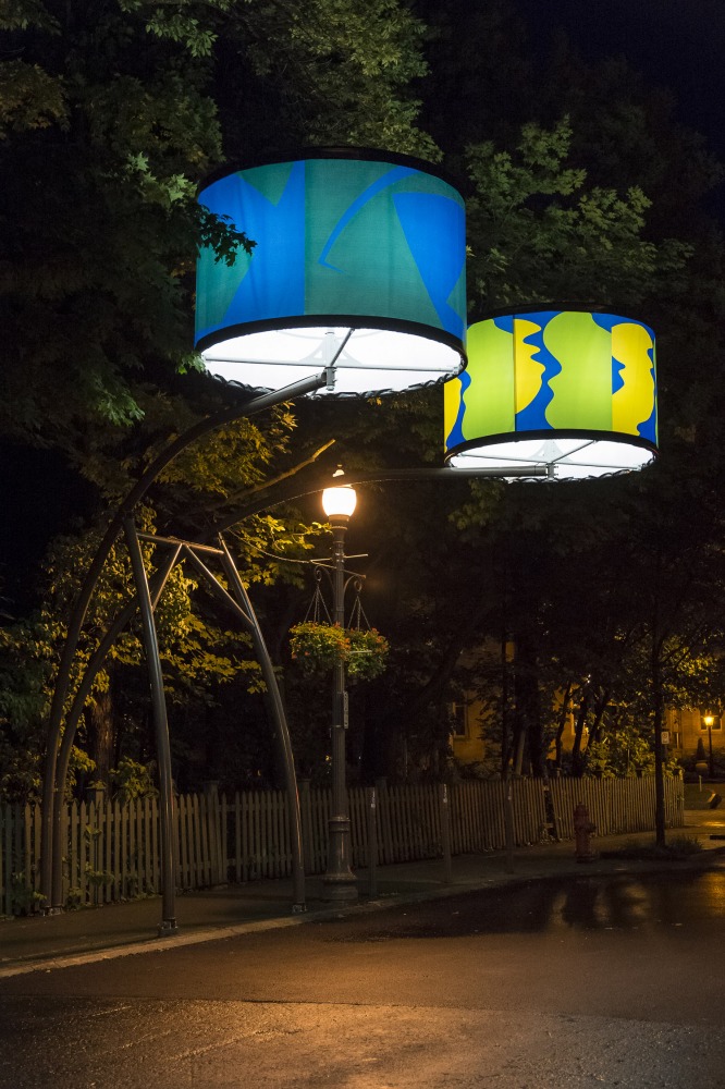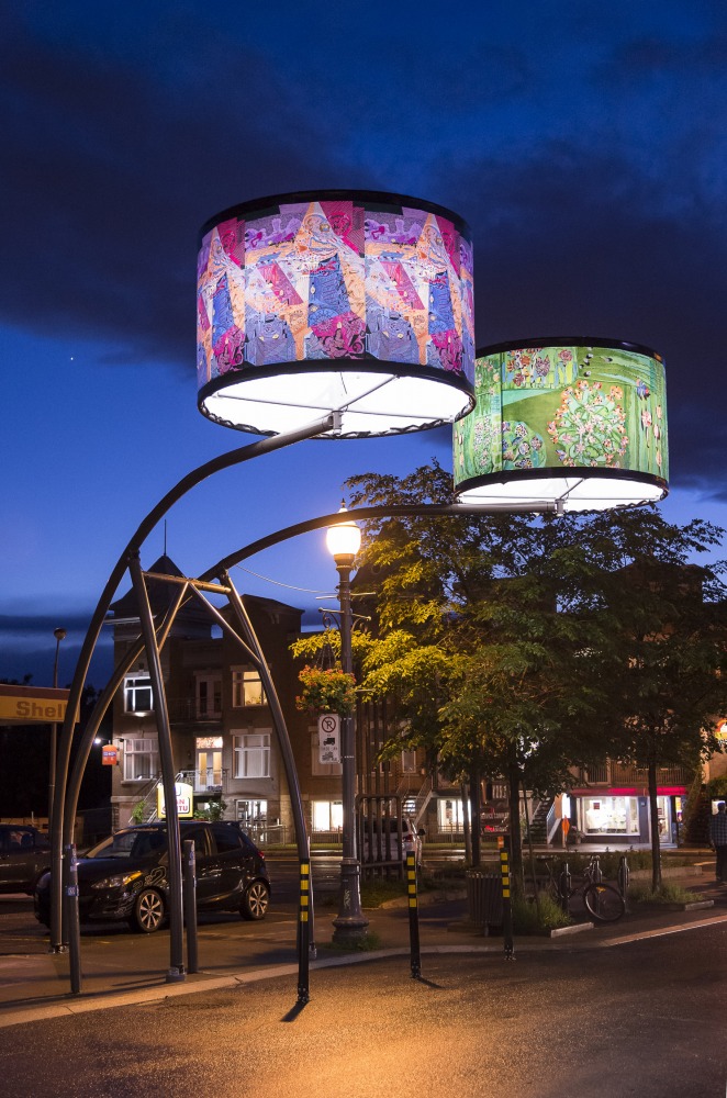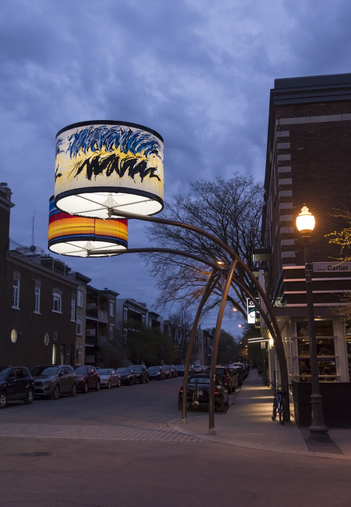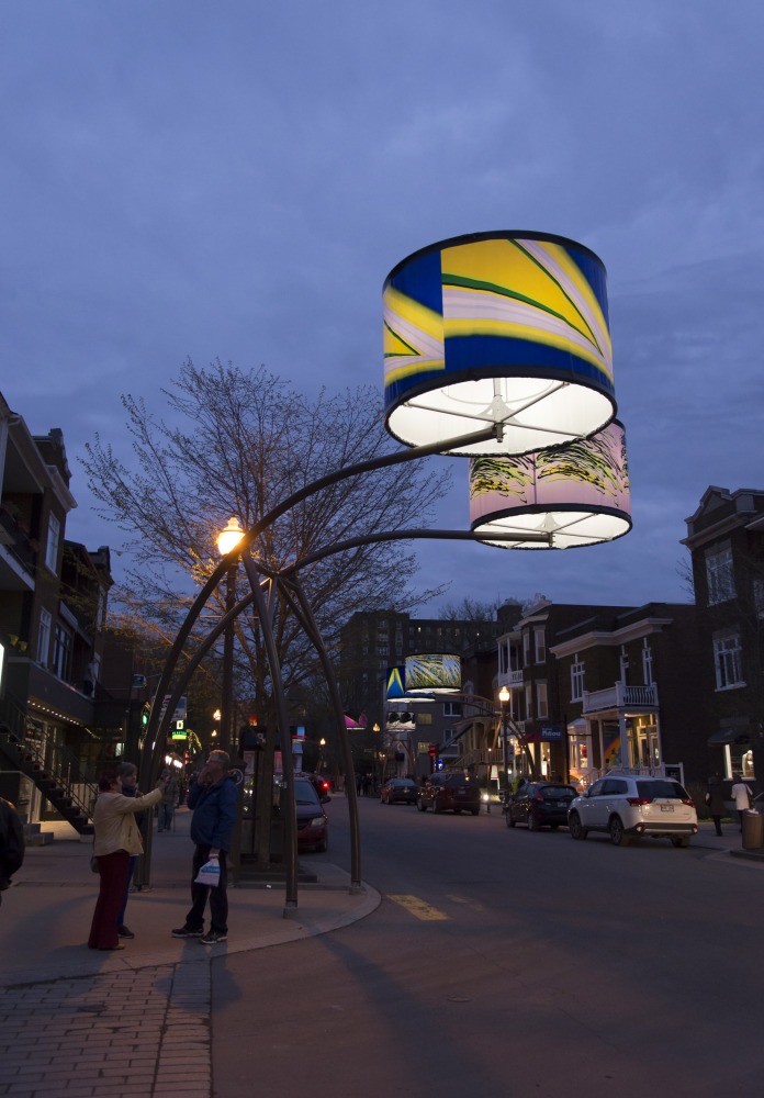 Manon de Pauw, professeure à l’école des arts visuels et médiatiques, signe l’édition 2018-2019 de Lumière sur l’art en créant 34 œuvres inédites pour l’occasion. L’artiste s’est amusée avec ce concept unique plus grand que nature : «J’ai abordé Lumière sur l’art comme un jeu sur la lumière, la matière, la forme et la couleur, une exploration sur la temporalité et la circularité des images, toujours en considérant le point de vue des passants, explique-t-elle. Les abat-jours sont à la fois des objets utilitaires et des supports artistiques, allumés le soir et éteints le jour. Ces dualités m’ont interpellée dans ma manière de concevoir le parcours.»