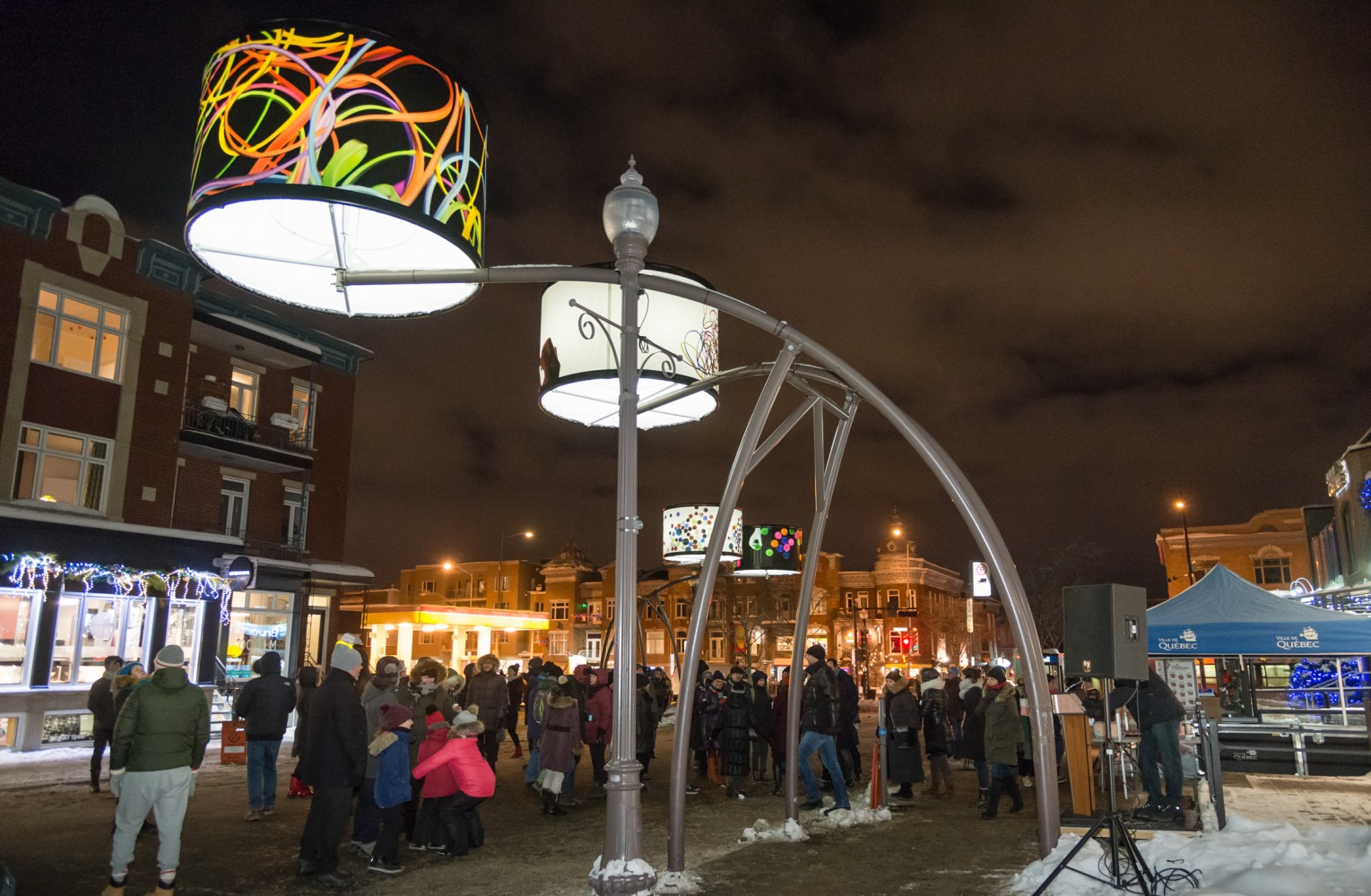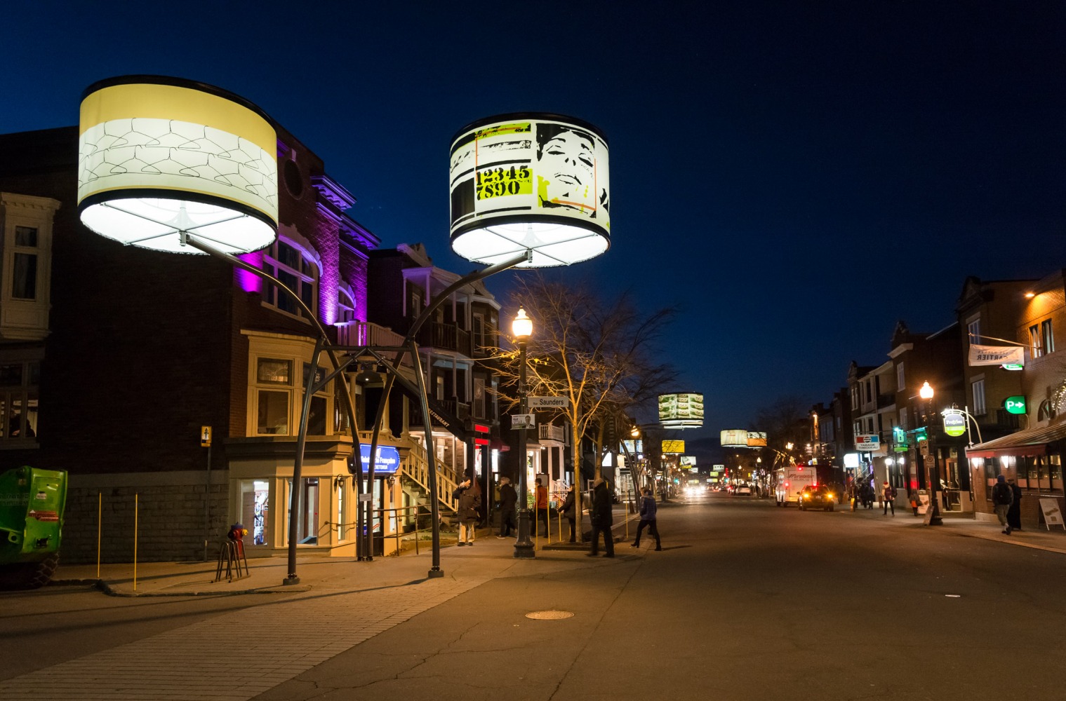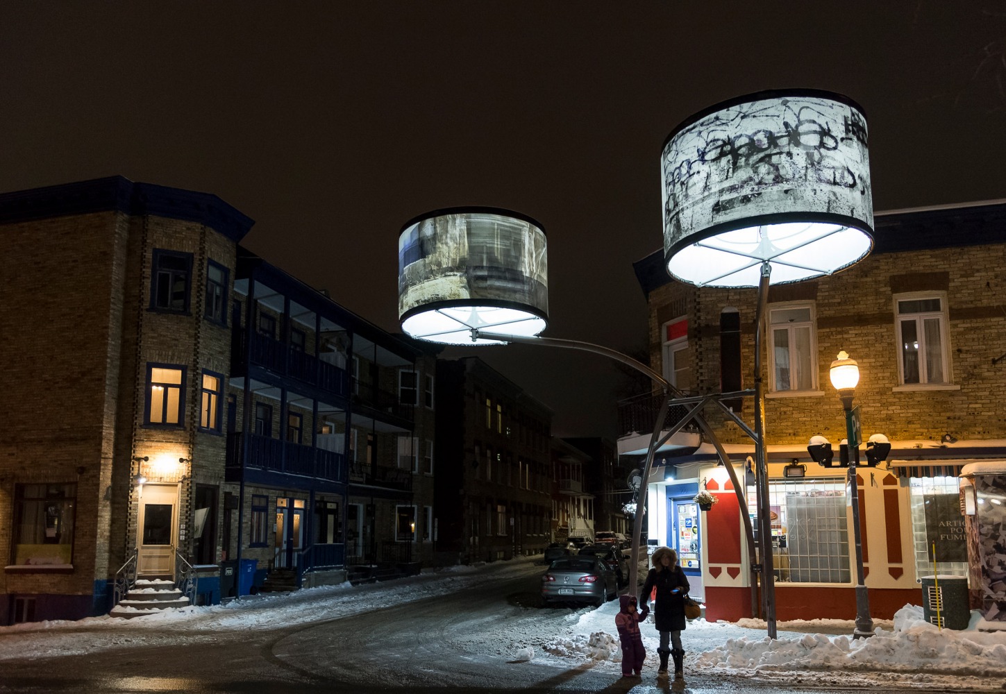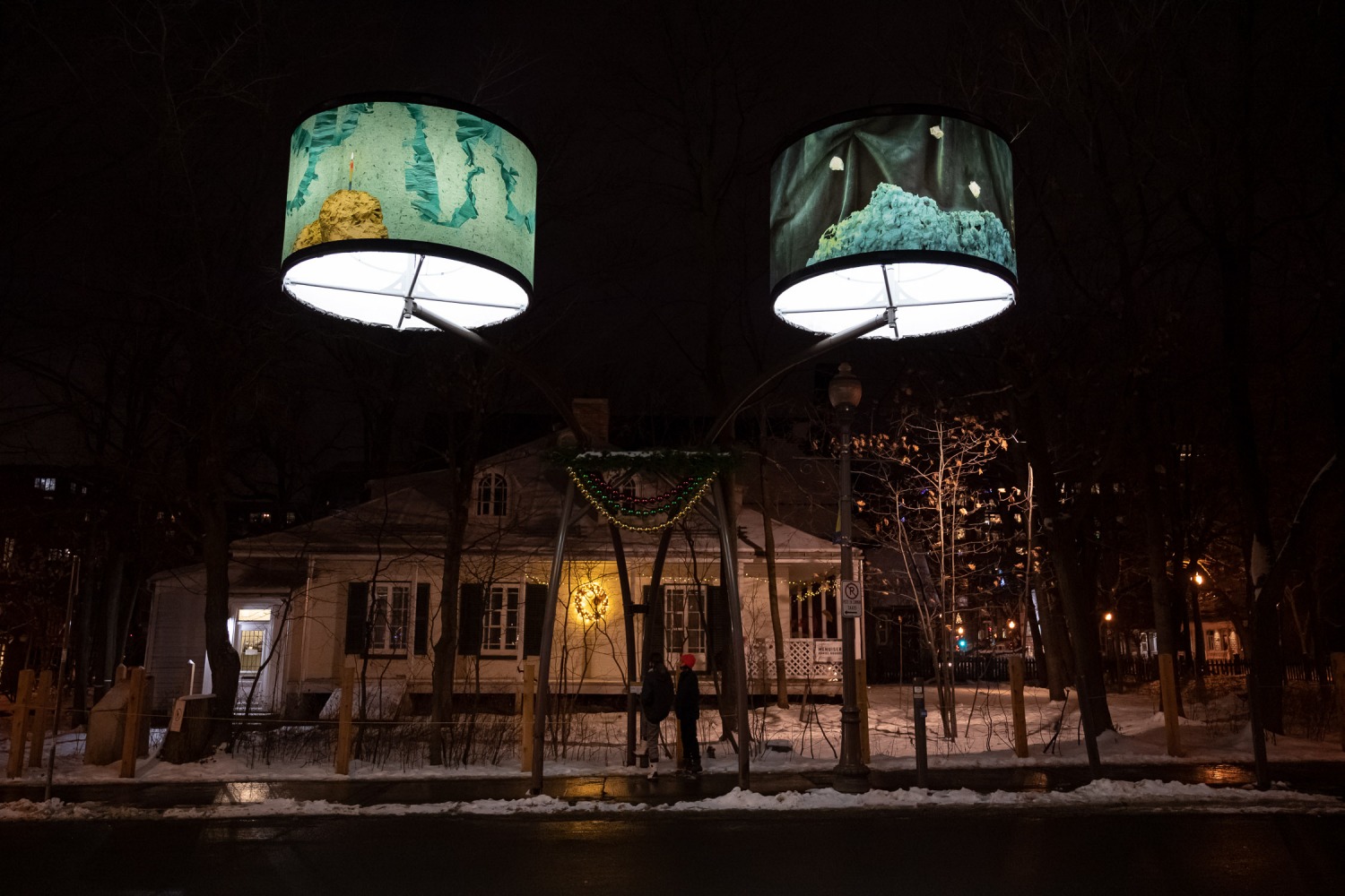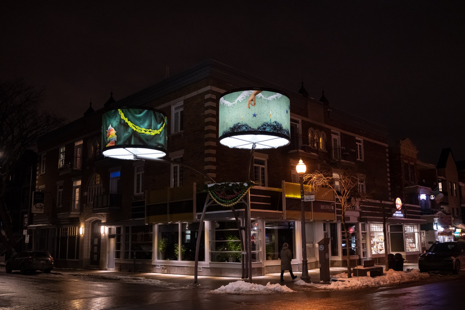 Manon de Pauw, professeure à l’école des arts visuels et médiatiques, signe l’édition 2018-2019 de Lumière sur l’art en créant 34 œuvres inédites pour l’occasion. L’artiste s’est amusée avec ce concept unique plus grand que nature : «J’ai abordé Lumière sur l’art comme un jeu sur la lumière, la matière, la forme et la couleur, une exploration sur la temporalité et la circularité des images, toujours en considérant le point de vue des passants, explique-t-elle. Les abat-jours sont à la fois des objets utilitaires et des supports artistiques, allumés le soir et éteints le jour. Ces dualités m’ont interpellée dans ma manière de concevoir le parcours.»