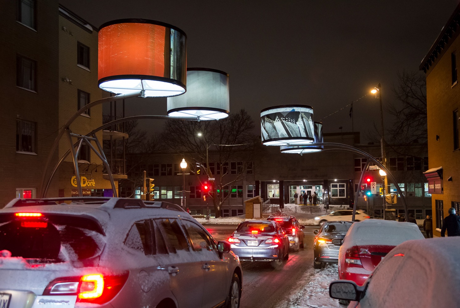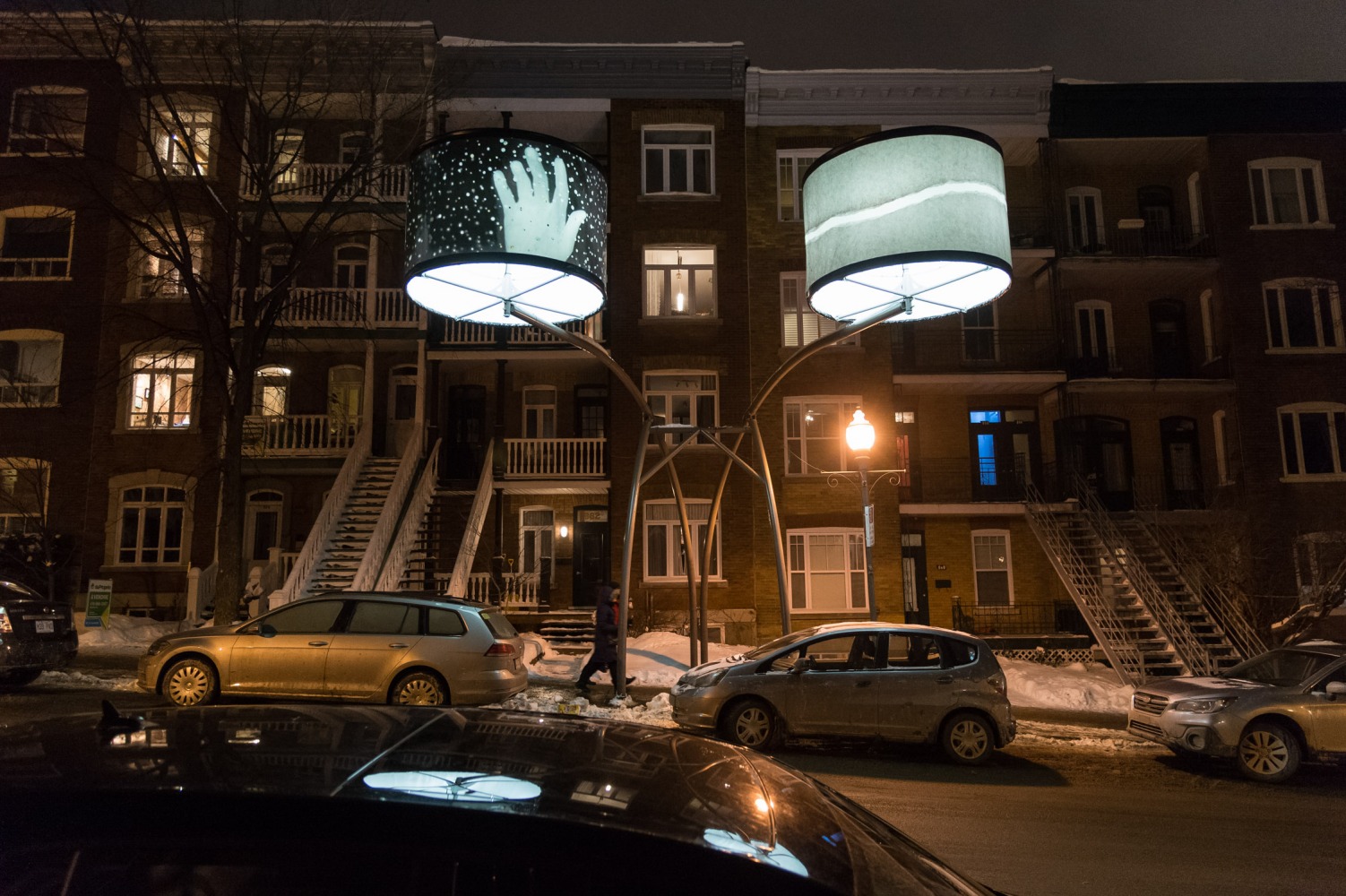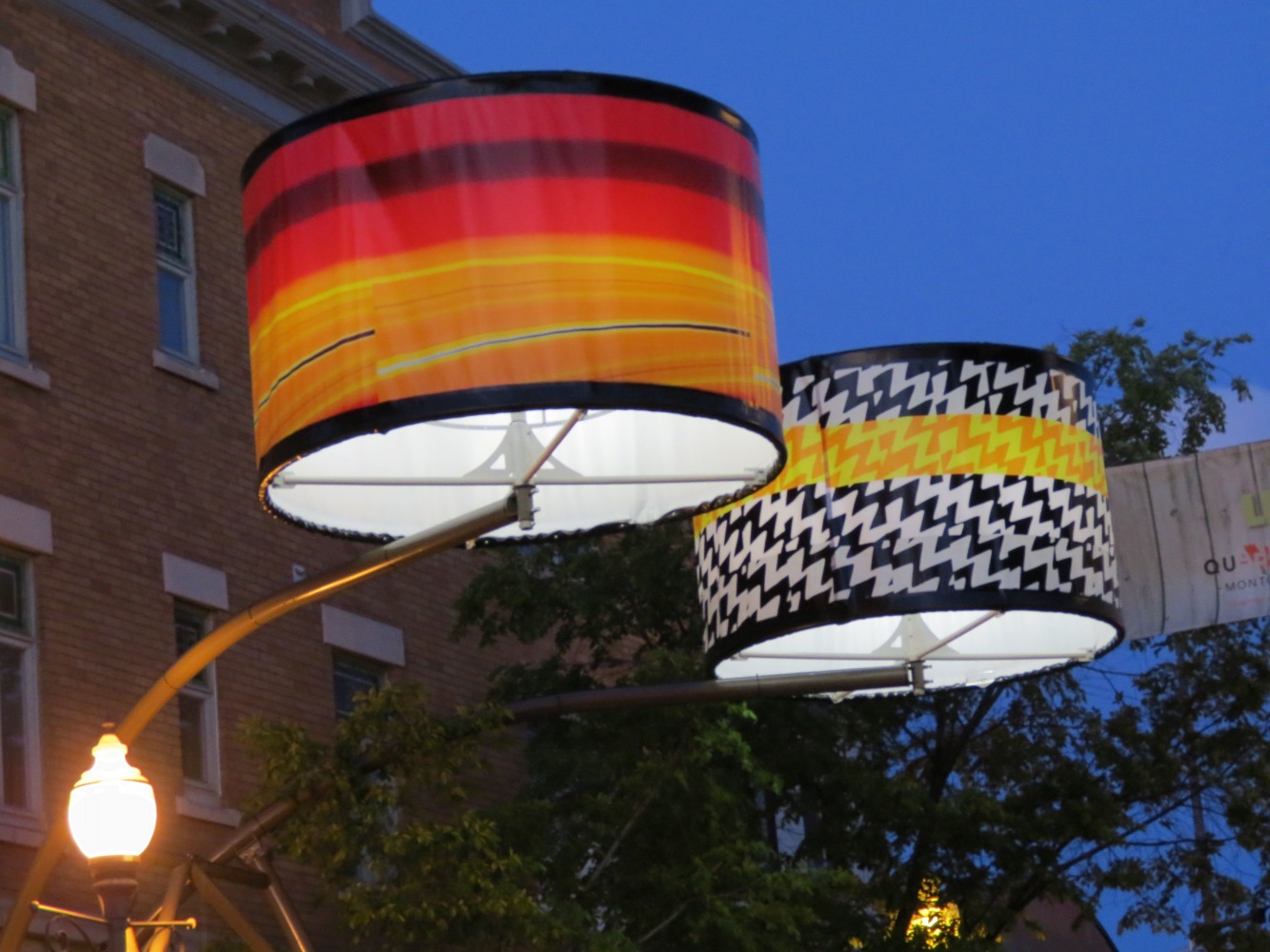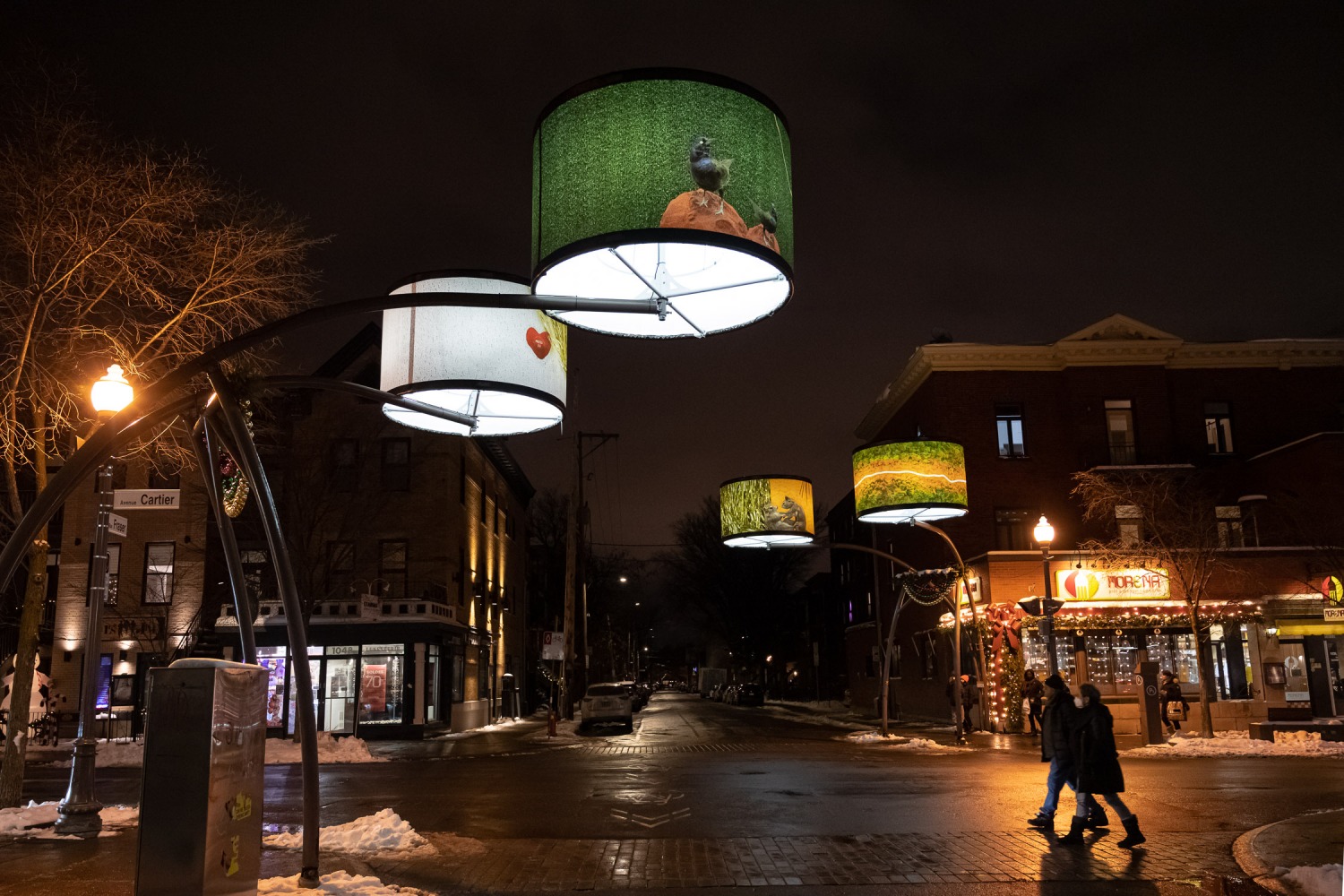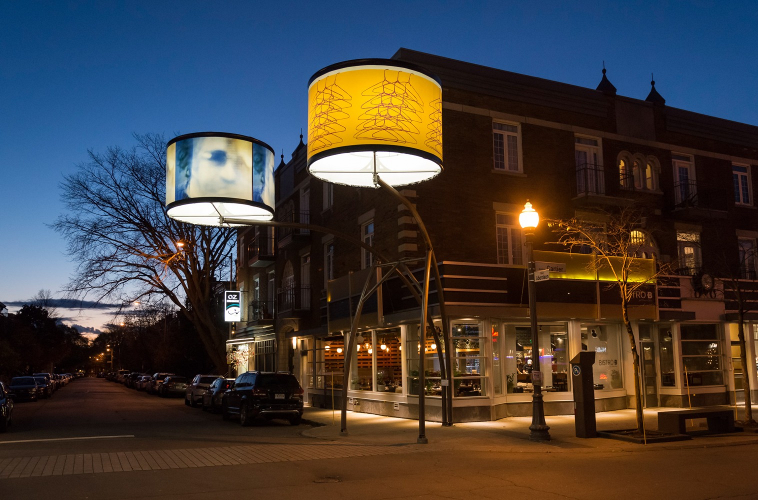 Manon de Pauw, professeure à l’école des arts visuels et médiatiques, signe l’édition 2018-2019 de Lumière sur l’art en créant 34 œuvres inédites pour l’occasion. L’artiste s’est amusée avec ce concept unique plus grand que nature : «J’ai abordé Lumière sur l’art comme un jeu sur la lumière, la matière, la forme et la couleur, une exploration sur la temporalité et la circularité des images, toujours en considérant le point de vue des passants, explique-t-elle. Les abat-jours sont à la fois des objets utilitaires et des supports artistiques, allumés le soir et éteints le jour. Ces dualités m’ont interpellée dans ma manière de concevoir le parcours.»