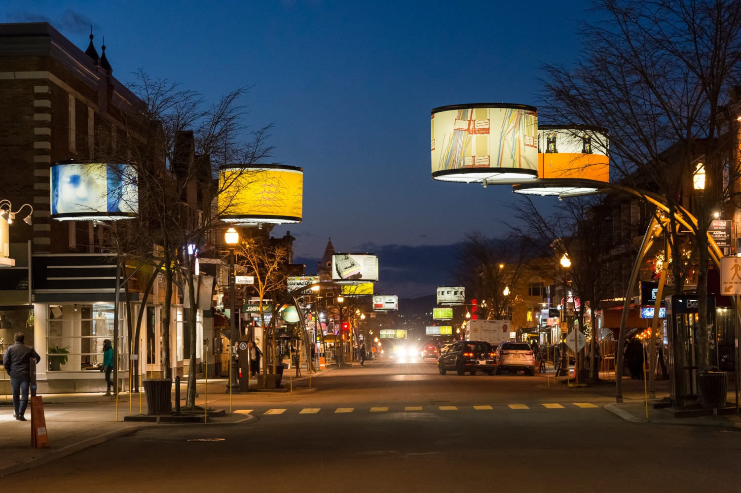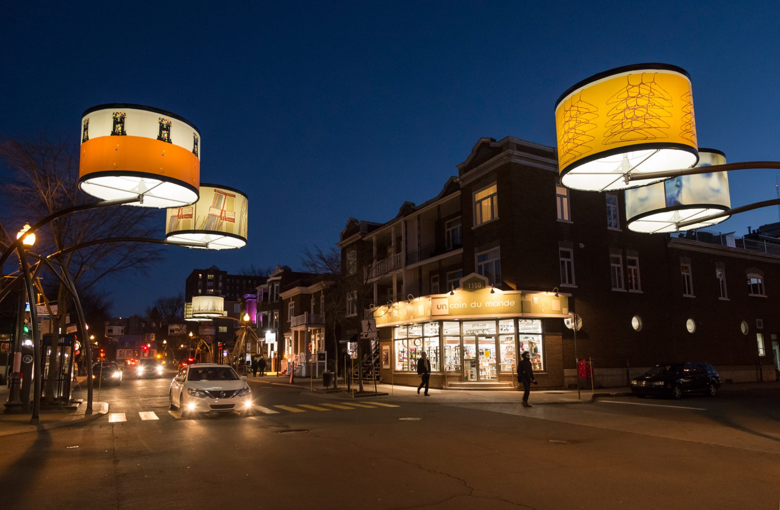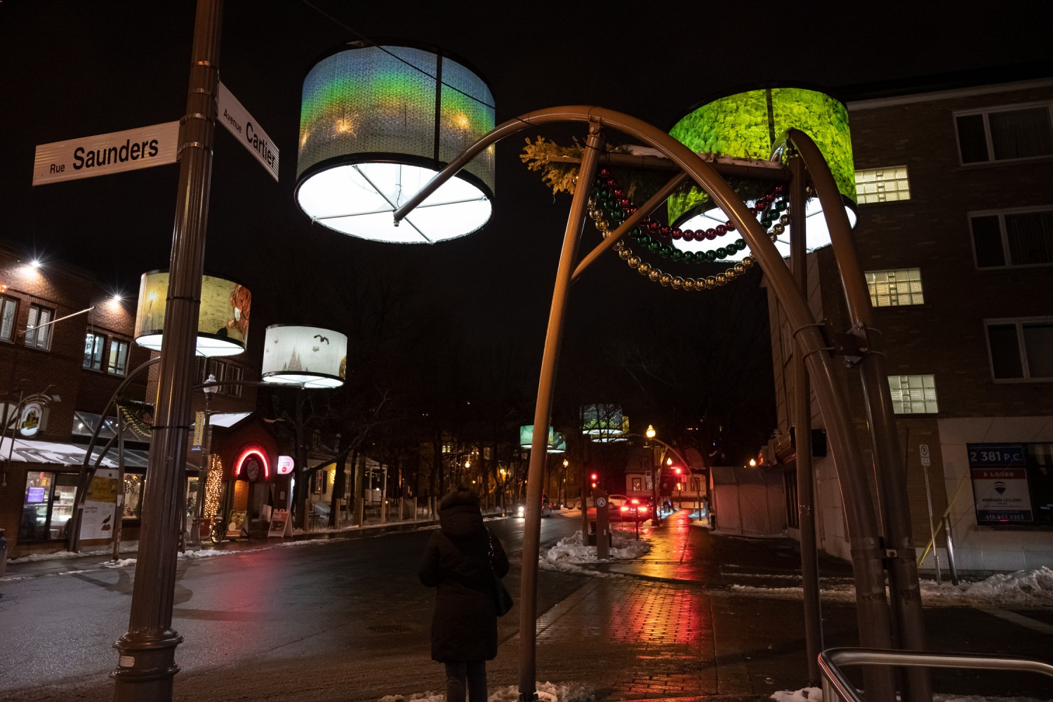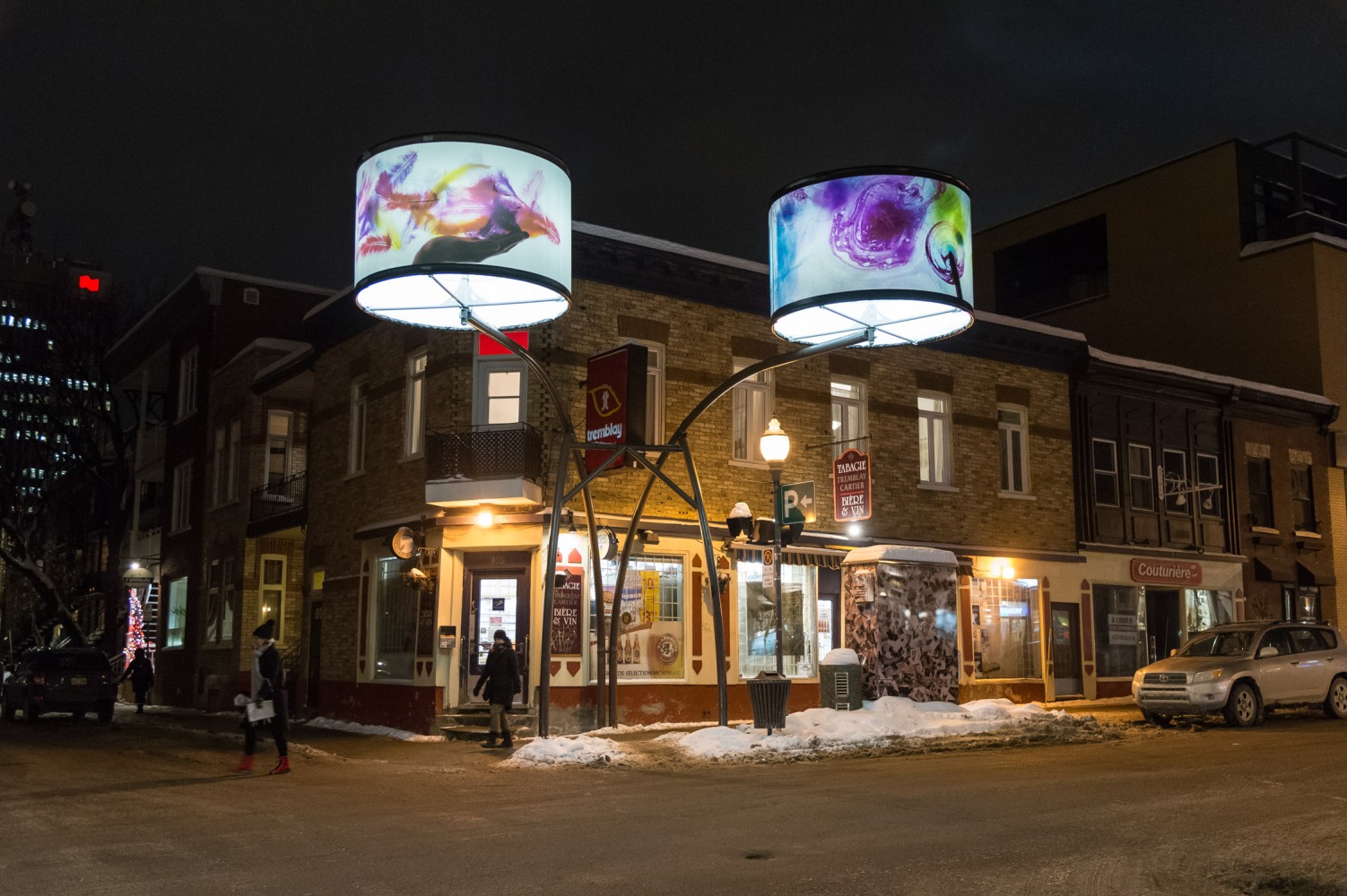 Manon de Pauw, professeure à l’école des arts visuels et médiatiques, signe l’édition 2018-2019 de Lumière sur l’art en créant 34 œuvres inédites pour l’occasion. L’artiste s’est amusée avec ce concept unique plus grand que nature : «J’ai abordé Lumière sur l’art comme un jeu sur la lumière, la matière, la forme et la couleur, une exploration sur la temporalité et la circularité des images, toujours en considérant le point de vue des passants, explique-t-elle. Les abat-jours sont à la fois des objets utilitaires et des supports artistiques, allumés le soir et éteints le jour. Ces dualités m’ont interpellée dans ma manière de concevoir le parcours.»