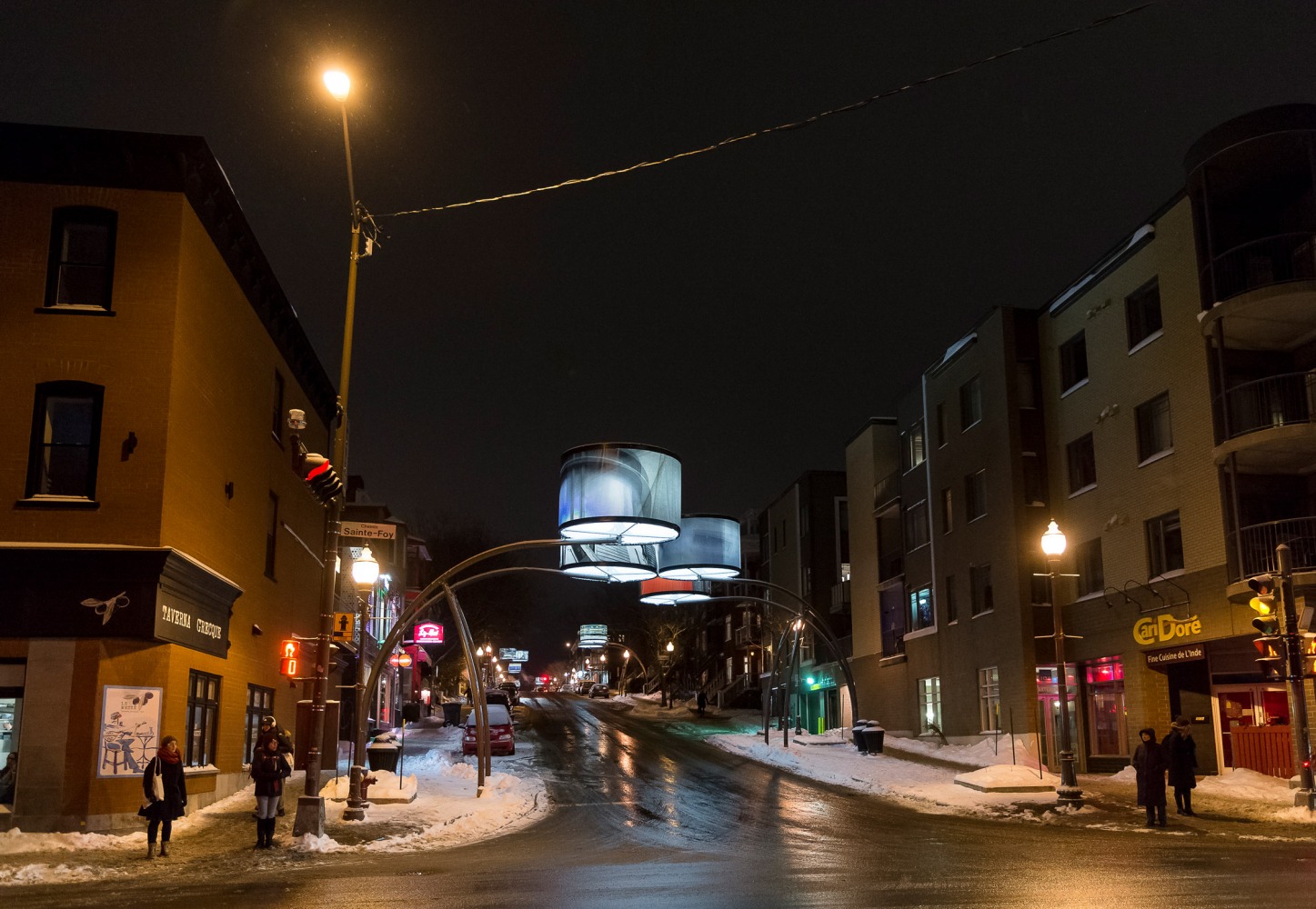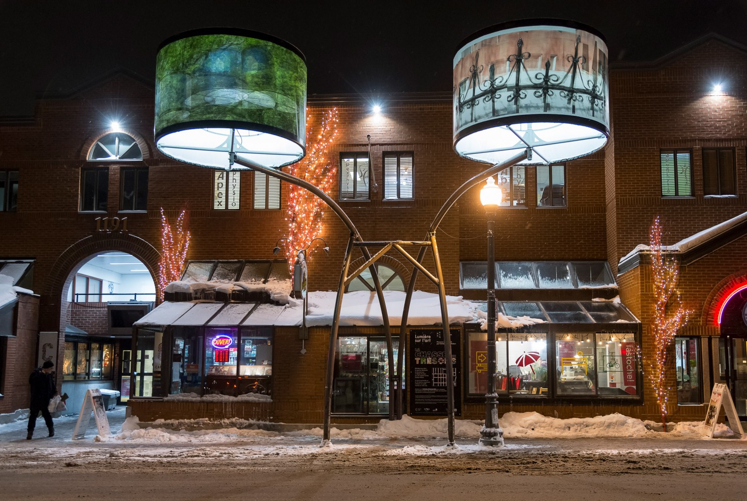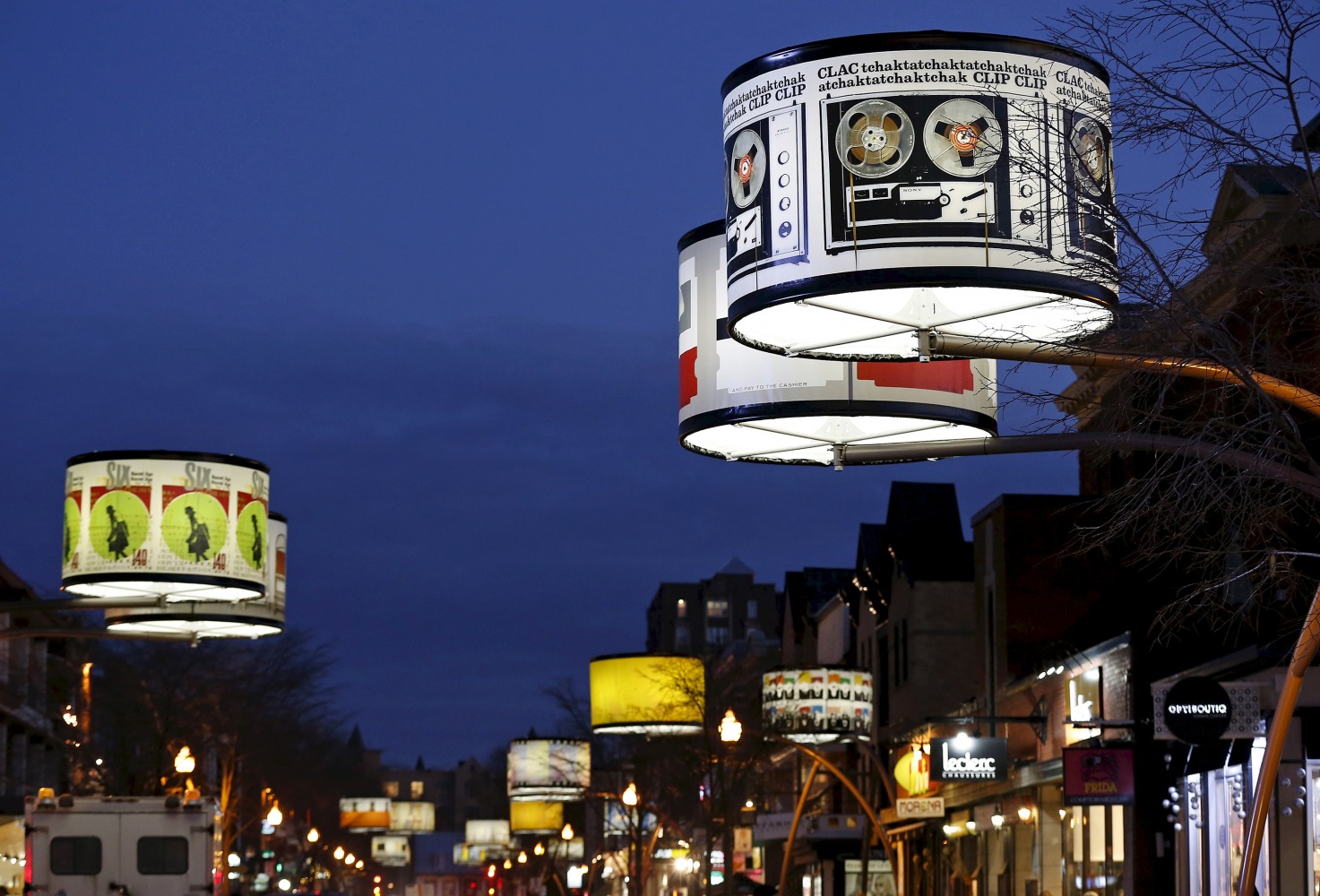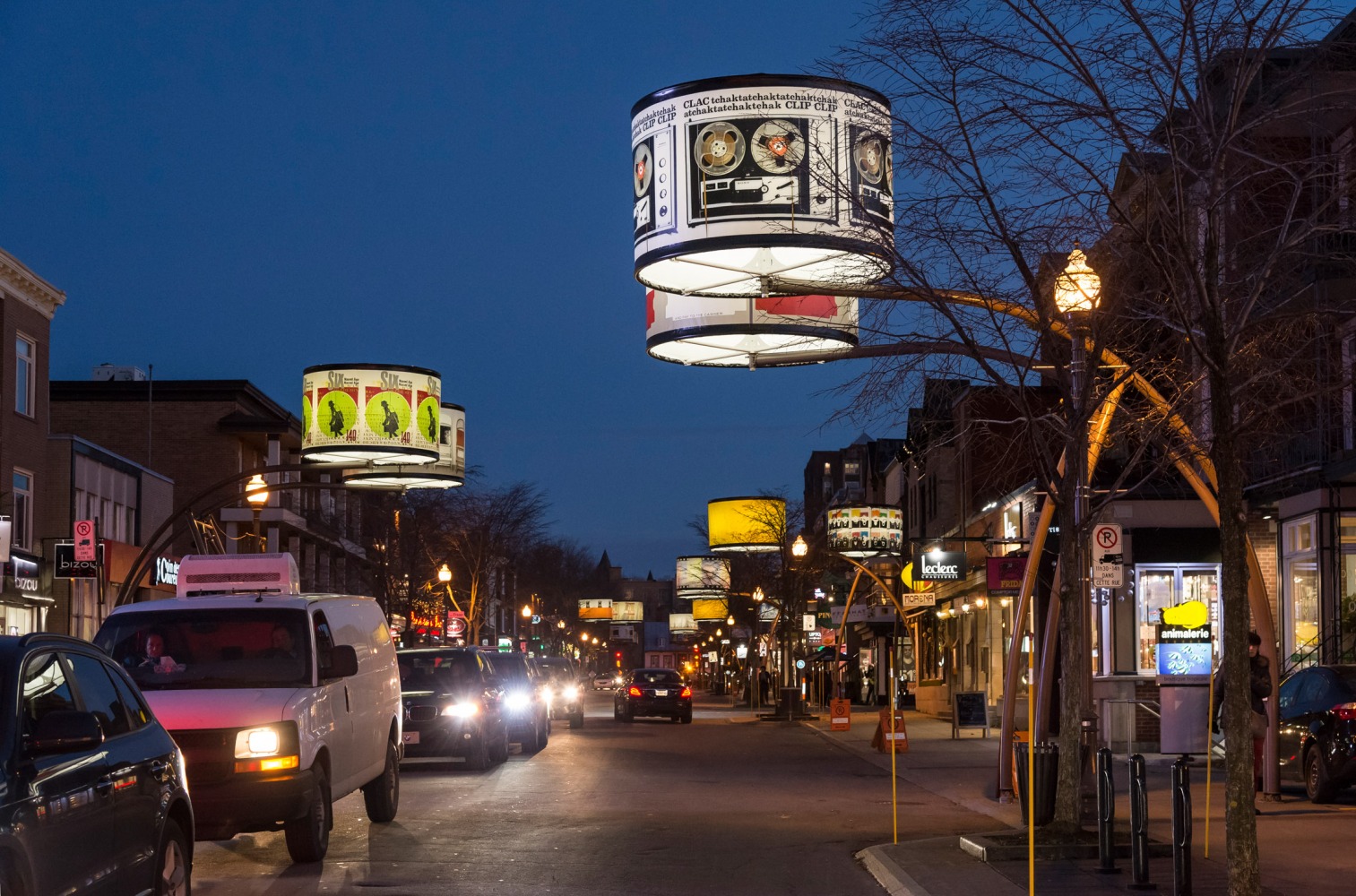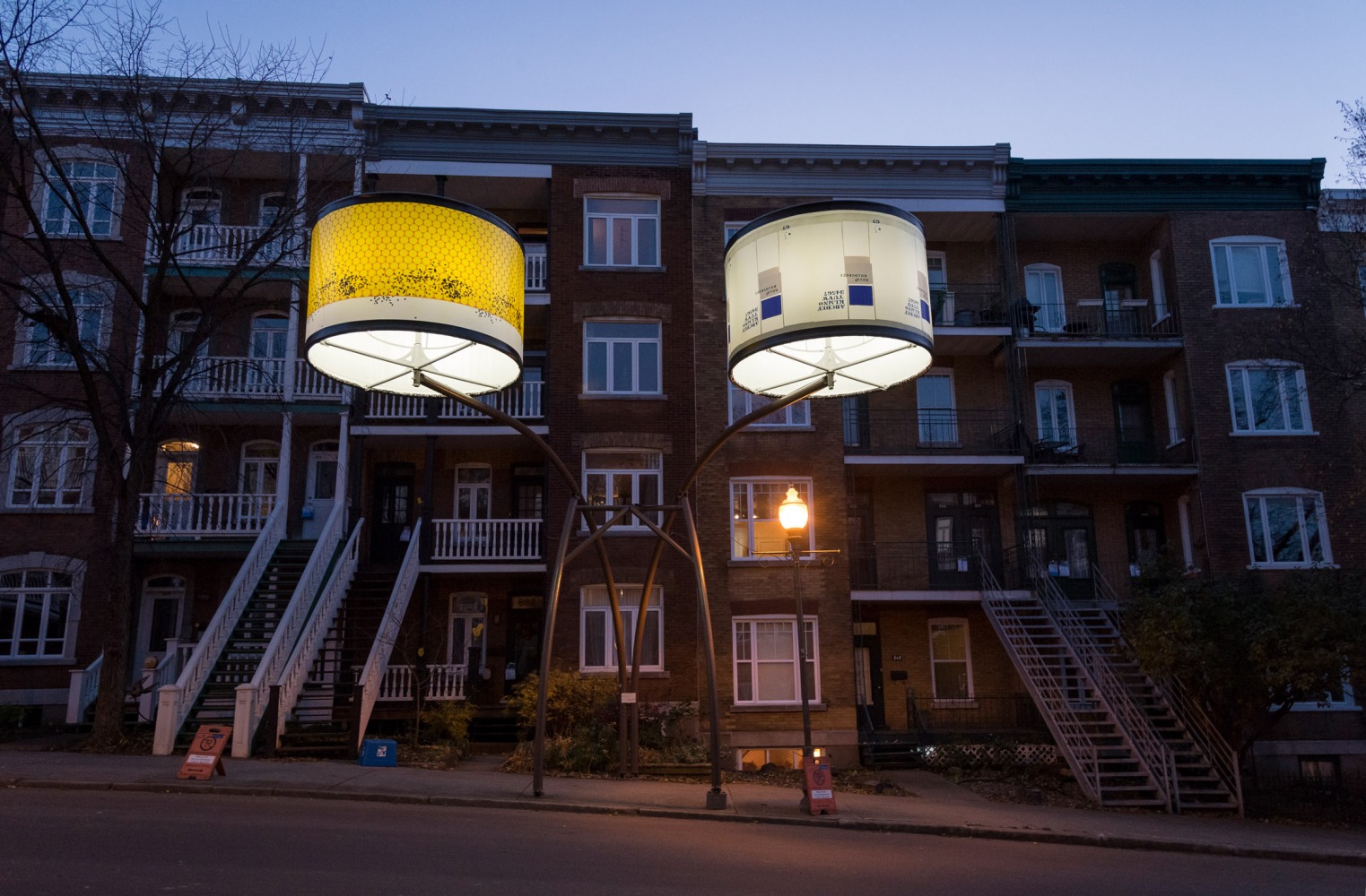 Manon de Pauw, professeure à l’école des arts visuels et médiatiques, signe l’édition 2018-2019 de Lumière sur l’art en créant 34 œuvres inédites pour l’occasion. L’artiste s’est amusée avec ce concept unique plus grand que nature : «J’ai abordé Lumière sur l’art comme un jeu sur la lumière, la matière, la forme et la couleur, une exploration sur la temporalité et la circularité des images, toujours en considérant le point de vue des passants, explique-t-elle. Les abat-jours sont à la fois des objets utilitaires et des supports artistiques, allumés le soir et éteints le jour. Ces dualités m’ont interpellée dans ma manière de concevoir le parcours.»