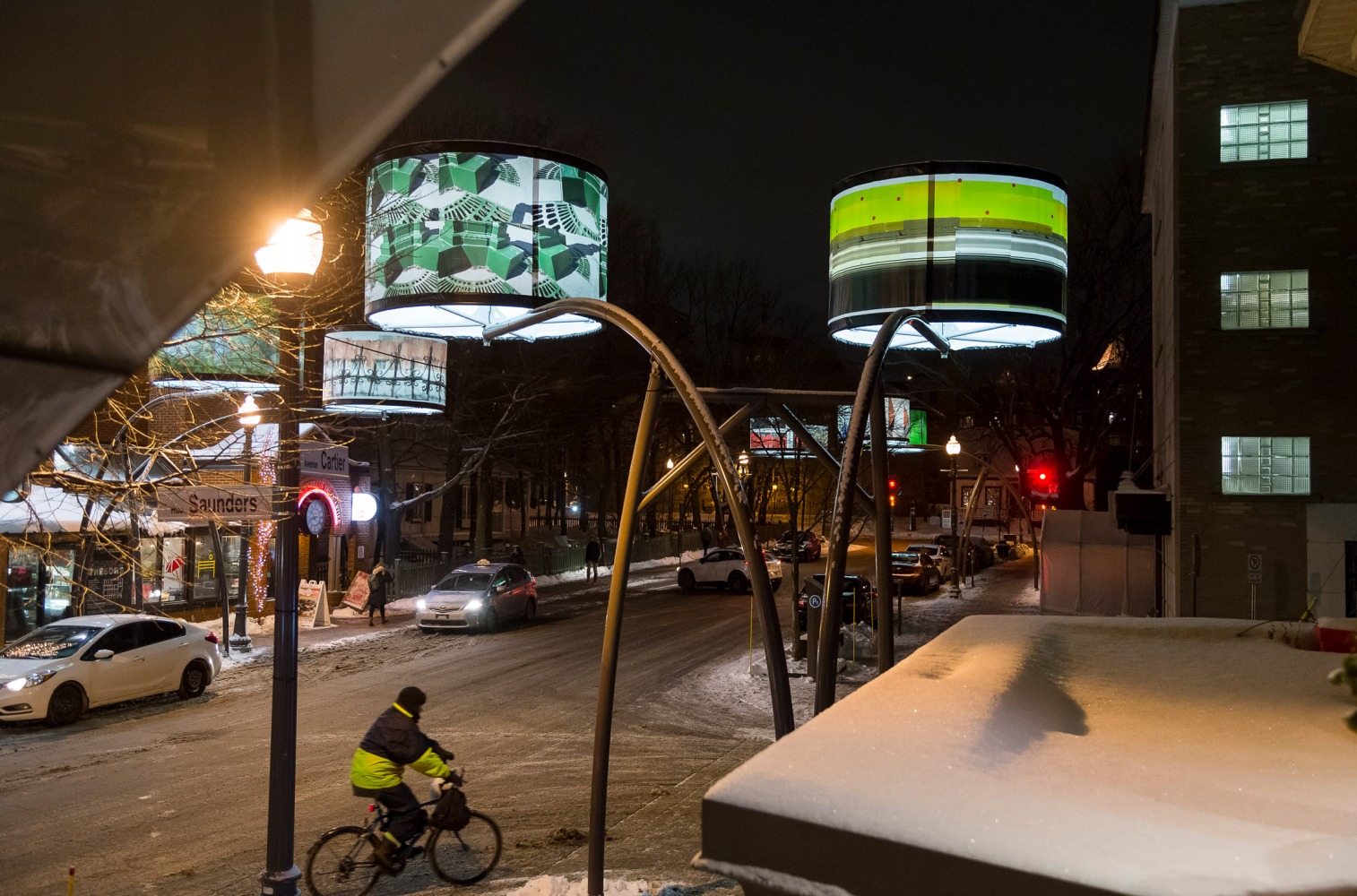 Tout comme pour la première édition de Lumière sur l’art, c’est une collection d'œuvres puisées dans la collection du Musée national des Beaux-Arts que l’on retrouve le long de l’avenue Cartier : les œuvres abstraites de Rita Letendre et Jacques Hurtubise. Colorée, lumineuse, éclatée sont des adjectifs qui décrivent très bien cette édition 2016-2017!