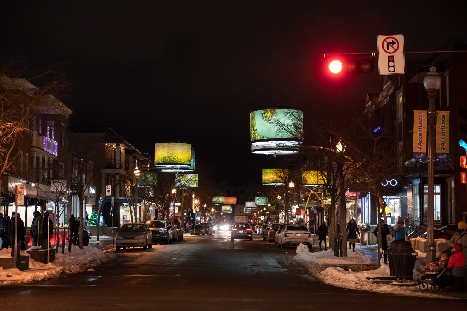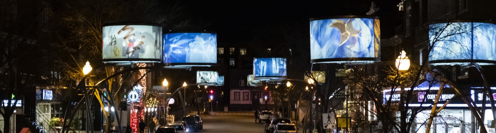 La 7e édition de Lumière sur l’art est signée Diane Obomsawin, artiste multidisciplinaire affectionnant particulièrement la bande-dessinée. D’origine abénaquise, Diane a voulu intégrer à travers ses illustrations colorées des images d’archives autochtones. Le résultat des plus originaux a pu être admiré sur l’avenue Cartier de novembre 2021 à octobre 2022.